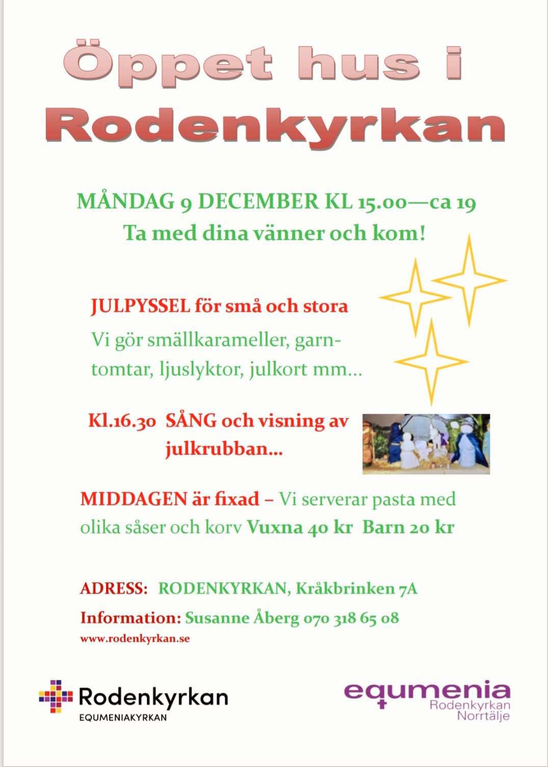 1 evenemang,![]() ![]() ”Jesu födelse” Susanne Åberg, predikan Håkan Hillström, gudstjänstledning Eva Lindh Hållén, sång Henrik Edström, musik |